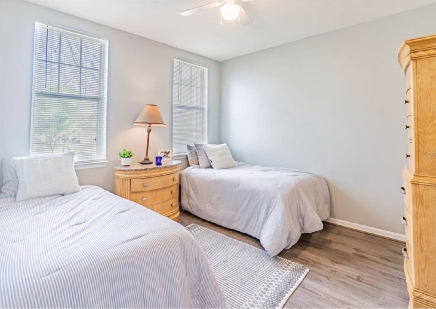 Welcome to 700 Siena Palm Drive, Unit 202, Celebration, FL 34747, a beautifully furnished 2-bedroom, 2-bathroom home located in the heart of Celebration, FL. This second-floor unit boasts luxury vinyl plank flooring throughout, providing a sleek and modern aesthetic. The home is equipped with all necessary appliances, including a washer and dryer for your convenience. The modern bathrooms and California Closets add a touch of elegance and functionality to the space. The home also features a nice private patio, perfect for enjoying the Florida sunshine. This unit comes with a dedicated parking spot (#90) for your convenience. As a resident, you'll have access to all Celebration amenities, with the exception of Artisan Park. The location is unbeatable, just 10 minutes from Disney World and 25 minutes from Universal. Please note, this is a no smoking and no pets property. Experience the best of Florida living at 700 Siena Palm Drive, Unit 202.